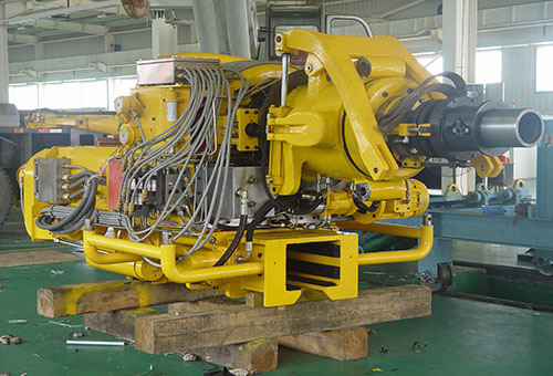 顶部驱动钻井装置,可以直接从井架空间上部直接旋转钻柱,并沿井架内专用导轨向下送进,完成钻柱旋转钻进、循环钻井液、接单根、上卸扣和倒划眼等多种钻井操作的钻井装备。顶驱减速机为顶驱装置中的主要传动部件,实现从电机到钻柱力矩与速度的传递和钻井钻具的提升