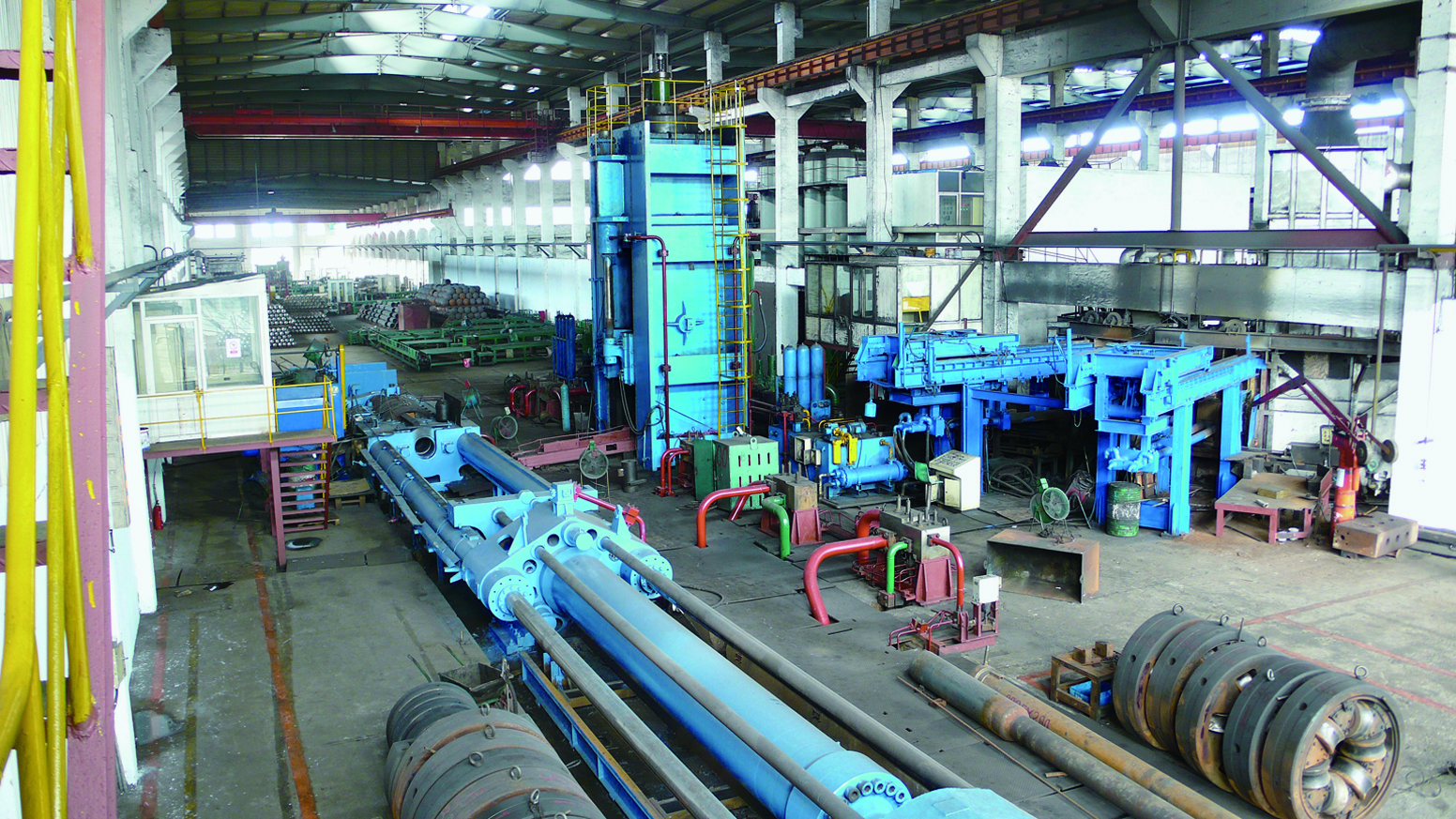 冲孔拔伸压机机组用于工业用气瓶、车载天然气瓶等高压气体容器的生产,也用于大口径厚壁无缝钢管的冲孔拔伸生产