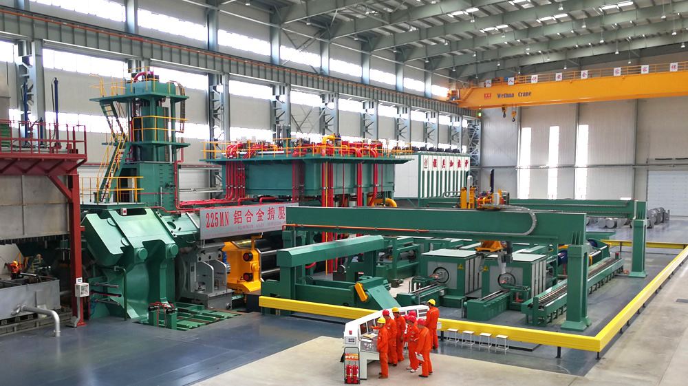 铝合金挤压机成套设备用于铝合金管材、棒材、型材的挤压生产,挤压的产品广泛应用于航空航天、交通运输、能源化工、民用建筑等领