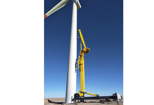 风电检修时时彩采用了垂直伸缩臂技术及塔筒附着技术,大幅提高了伸缩臂承载能力,可实现大高度起升作业。TZS50可将50t重物提升至85m高,TZS75可将75t重物提升至95m高。