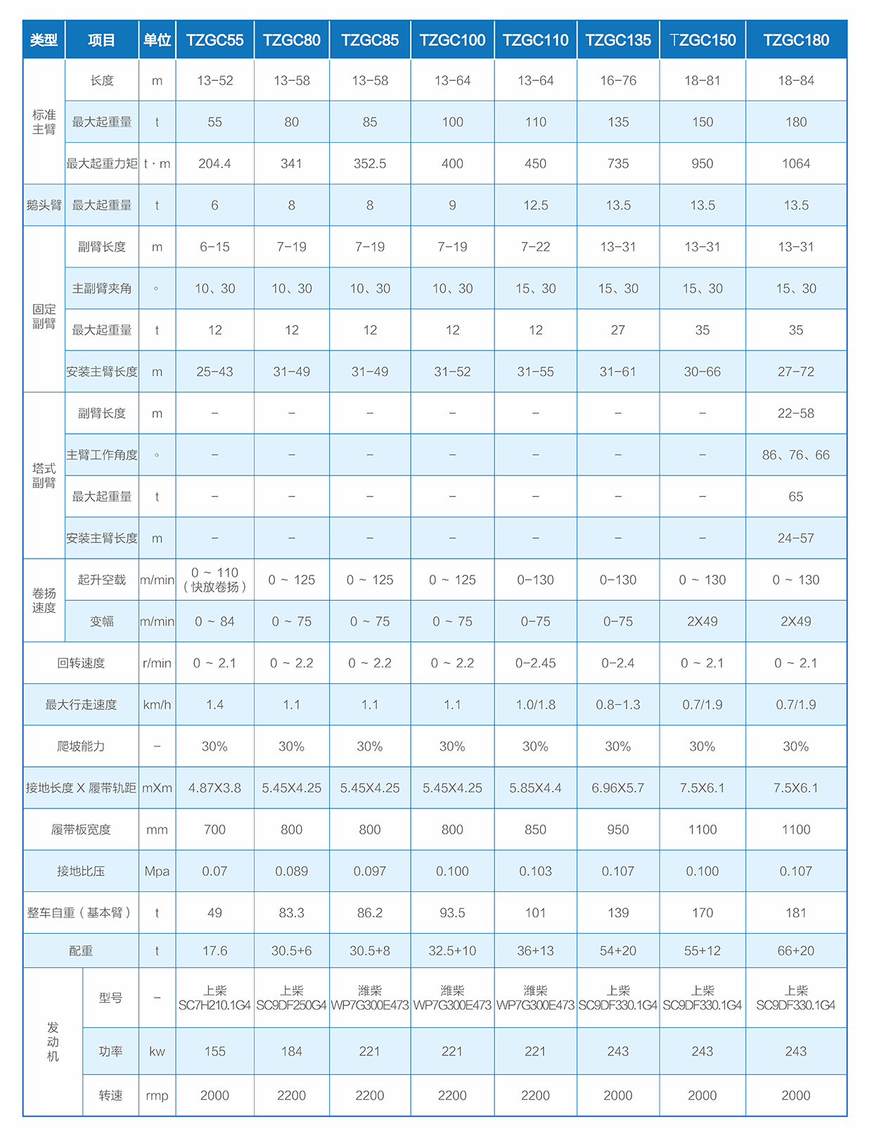 TZGC系列履带时时彩,产品涵盖55-180t,微动性优异、响应性快速、可靠性出色,整机性能行业领先。