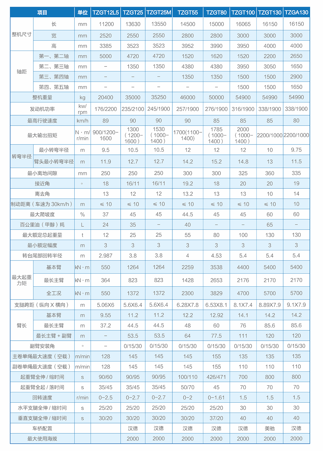 TZGT系列汽车时时彩和TZGA系列全地面时时彩,产品涵盖12-130t,整机性能行业领先