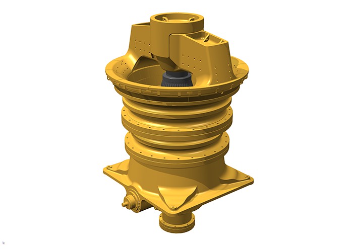 旋回式破碎机用于大型露天金属矿山矿石或岩石的初级破碎,将爆破或挖掘后的大块物料破碎成满足胶带机运输的粒度,处理能力1500t/h-10000t/h。