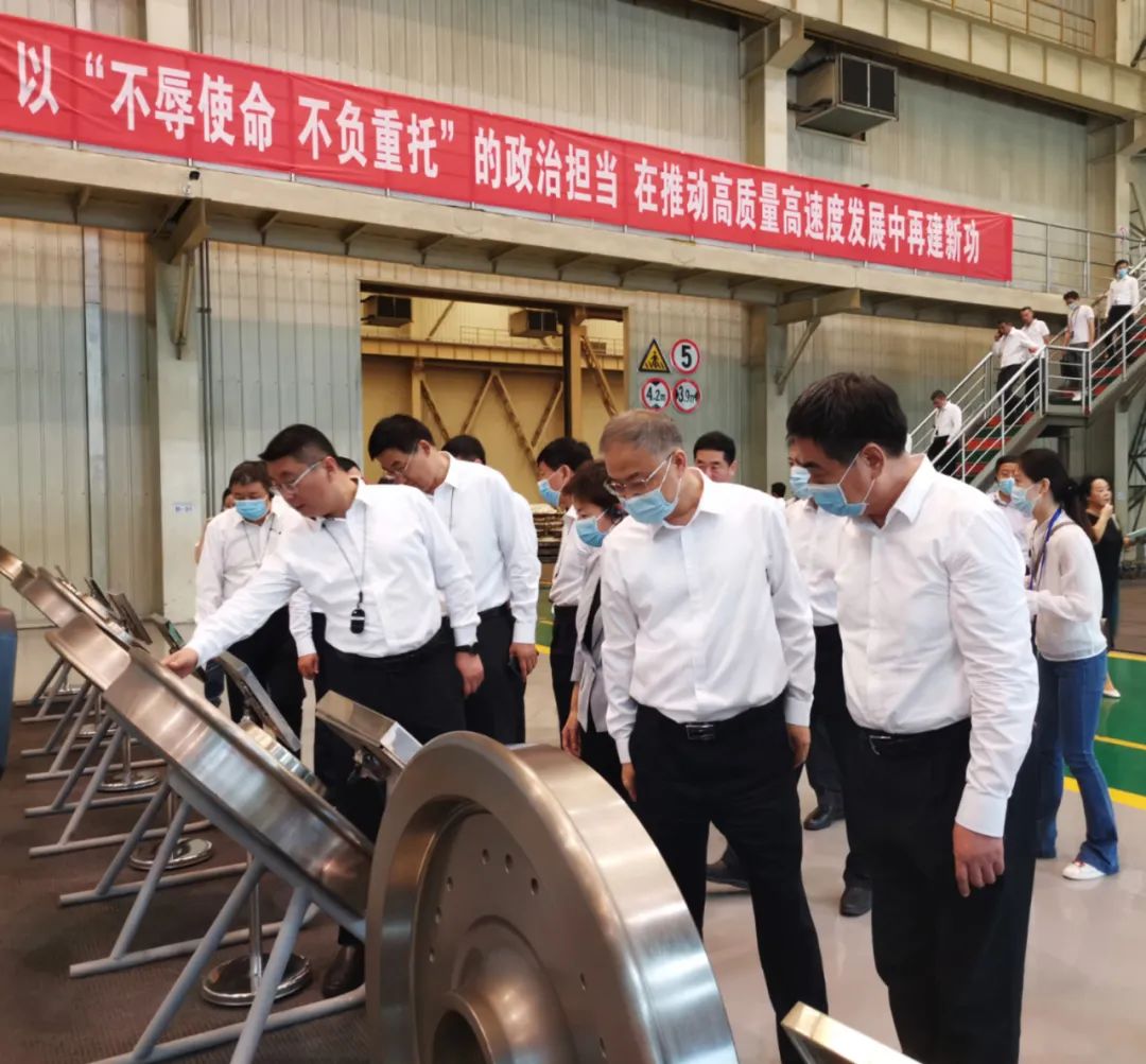 近日,太原市工业高质量发展大会召开。会前,太原市委副书记、市长张新伟及市委、市政府一行,相关企业、高校等150名参会领导前来太重,对太重高端装备制造产业发展情况进行深入了解,实地观摩了太原重工轨道交通设备有限公司高速列车关键零部件国产化项目车轮生产线现场。集团公司党委书记、董事长韩珍堂陪同参观。