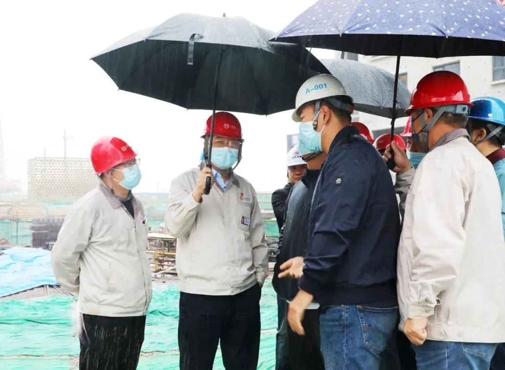金秋十月、秋雨绵绵。在新中国成立73周年,太重建厂72周年之际,10月1日,集团公司党委书记、董事长韩珍堂冒雨来到新园区项目建设现场检查工作并慰问。他实地察看了重点建设项目最新进展情况,并代表集团公司向奋战在施工一线的建设者们致以节日的问候和祝福。