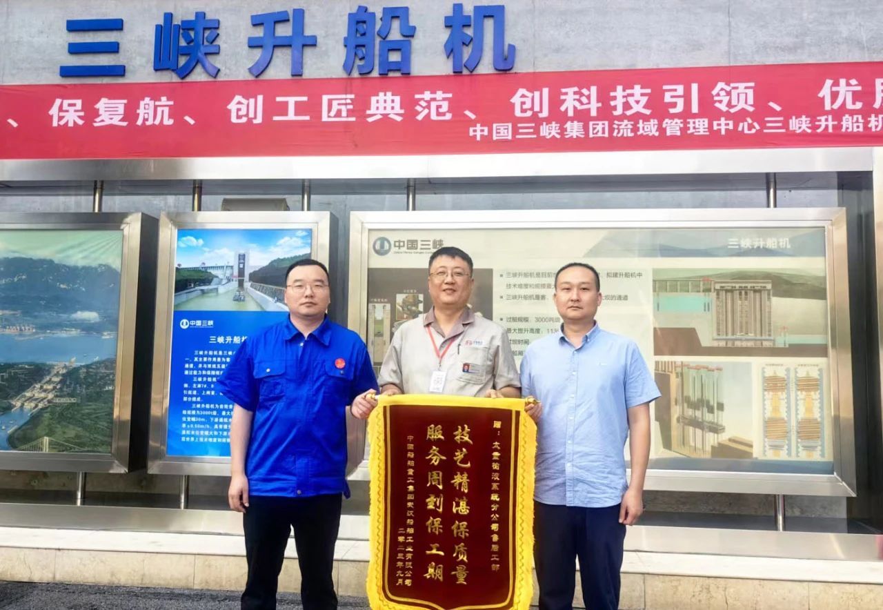 在三峡升船机2023年计划性停航检修项目总结大会上,公司服务人员雷明同志被评为“先进个人”称号;一面写着“技艺精湛保质量,服务周到保工期”的锦旗,展现用户对于太重榆液售后服务工作的充分肯定和高度赞扬,“太重速度”为我国三峡项目的平稳运行再立新功!