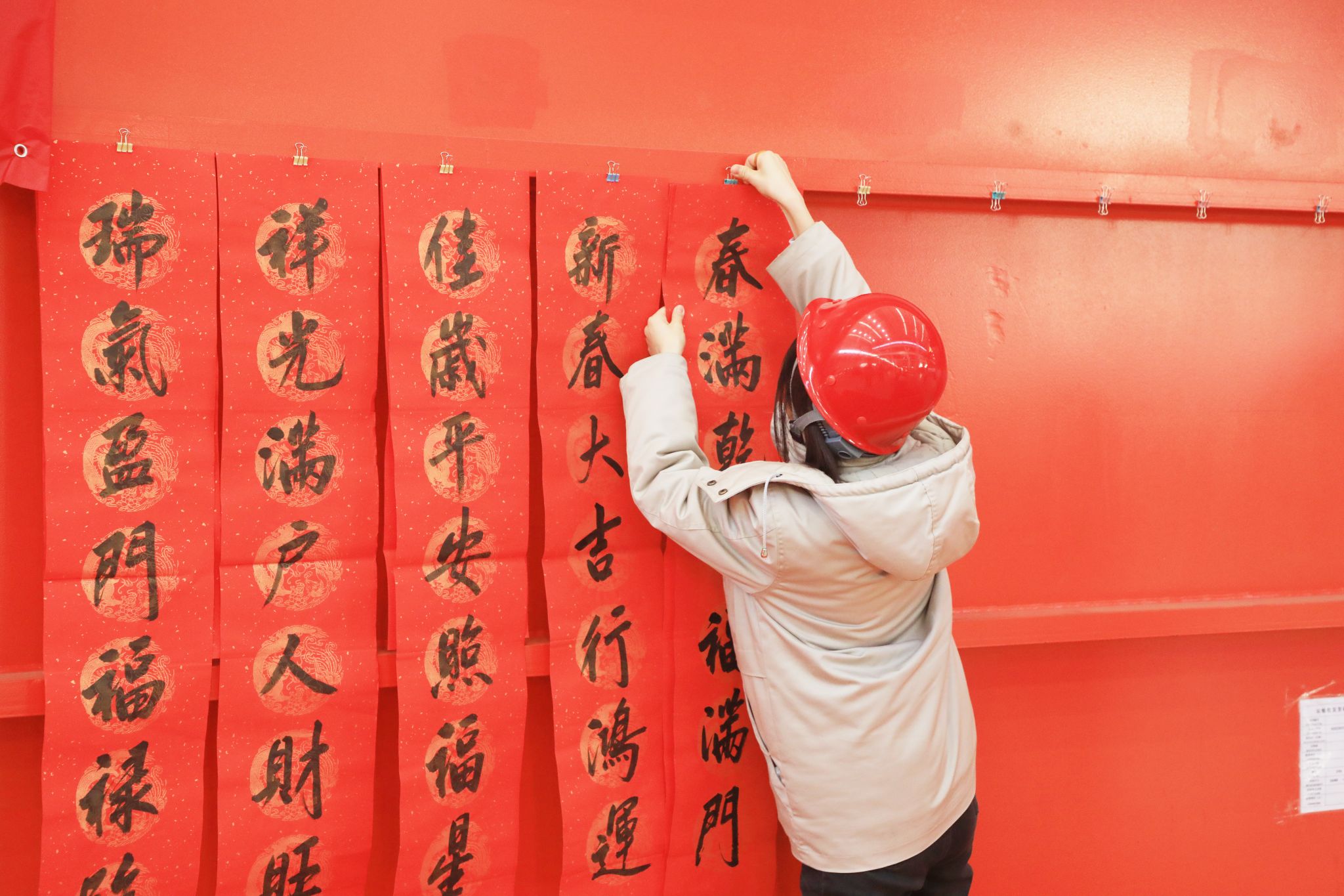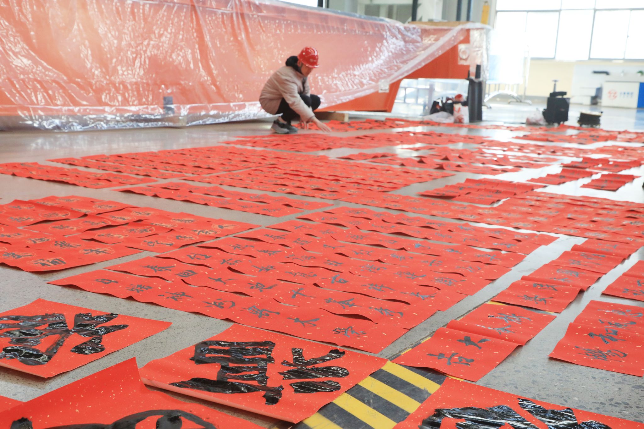 这些“福”气满满的春联,充满了对企业发展的美好期盼和对未来生活的无限憧憬,透着十足的年味,得到了职工们的热烈称赞。不一会儿功夫,桌上、地上就铺满了春联和“福”字,好似一片喜庆的“红地毯”。“老师们现场写春联,与买春联的感觉完全不同,这样充满仪式感的活动,让大家的心里都暖融融的,来年要更加努力在自己的工作岗位上发光发热!”职工们脸上洋溢着灿烂的笑容,开心无比。在现场,书法老师们共书写春联1000余副,并将这些蕴含着辛勤汗水、美好祝愿的春联送到职工手中,大家纷纷拿起手机拍照留念,记录下这幸福的瞬间。