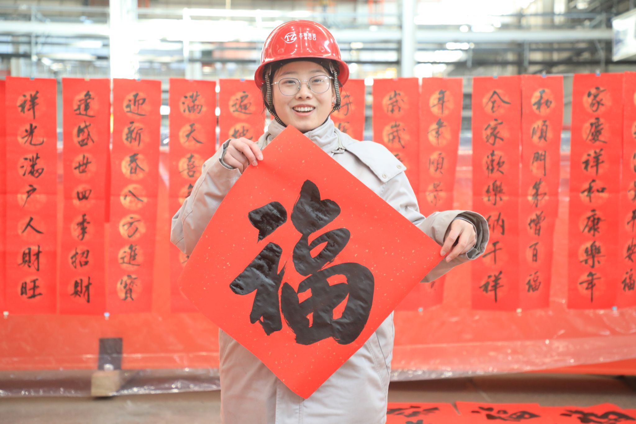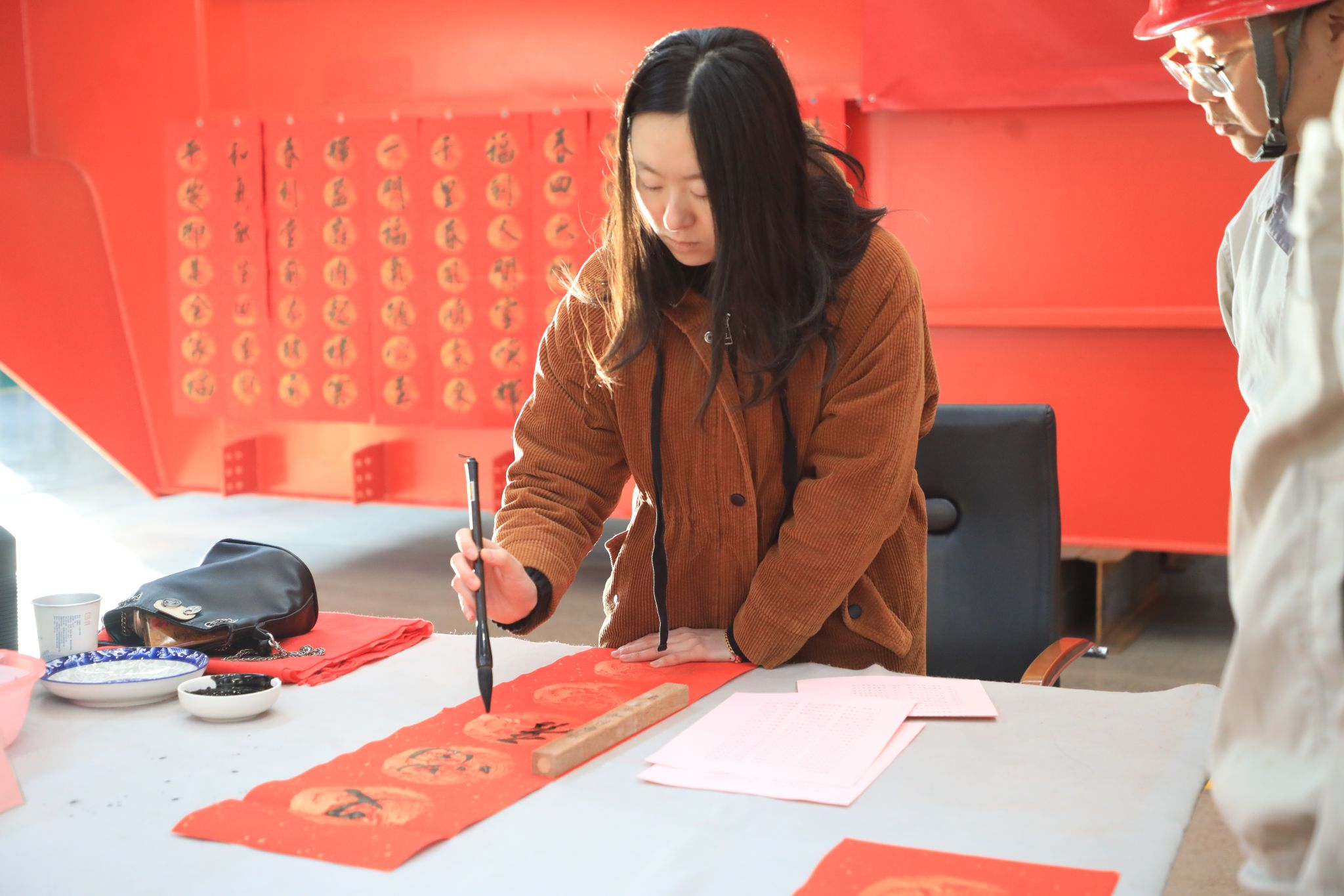 “乘风破浪,久久为功,再铸太重新辉煌;盛世龙腾,挑战自我,振兴崛起太重梦”“一帆风顺年年好,万事如意步步高”……铺纸、蘸墨、起笔,大家挥毫泼墨、激情书写,在红彤彤的喜庆与希冀中,将用心挑选的文字用艺术的形式展现出来,一幅幅遒劲有力、清爽洒脱的新春祝福,带着清新的墨香跃然纸上。
