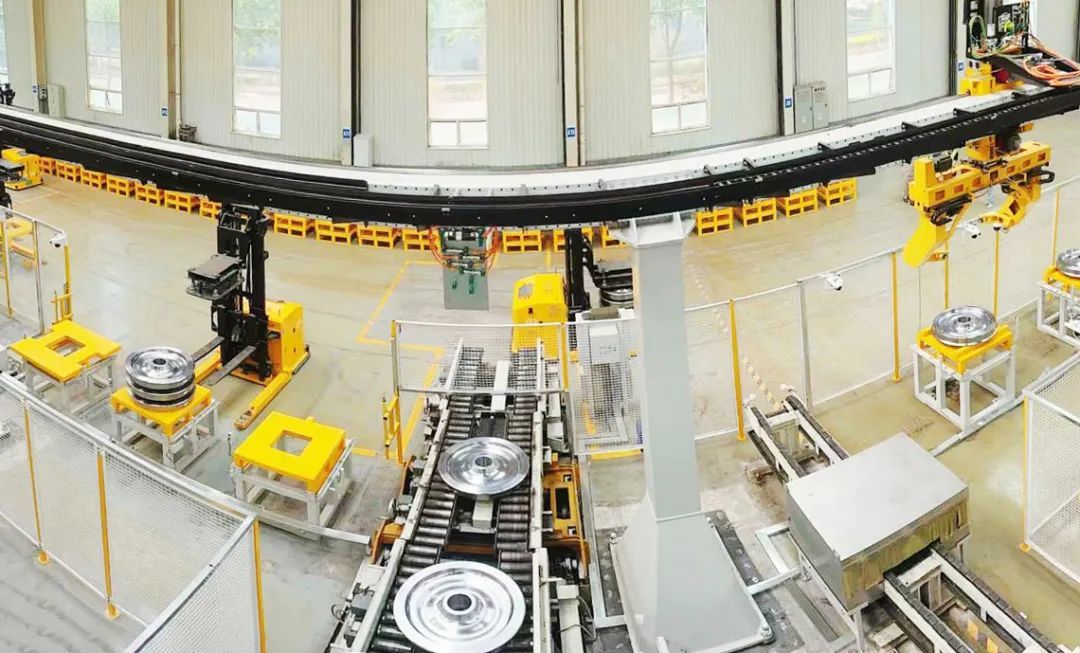 轨道车轮厂二线,一片片车轮搭载着5G网络和AGV小车完成机加工和检测工序,实现了毛坯到精品的快速蜕变。