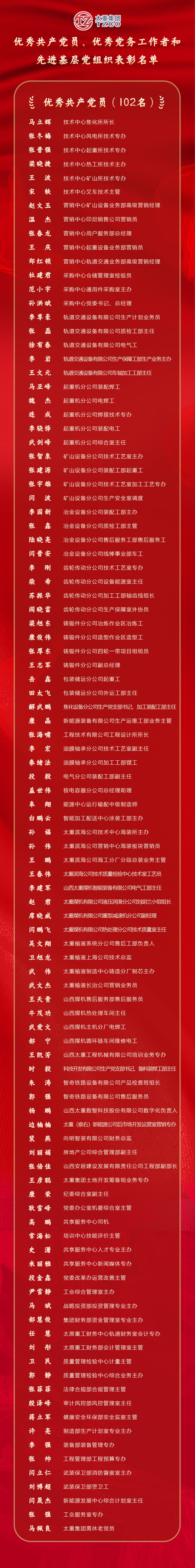 在建设具有国际一流竞争力的现代智能装备制造企业的新征程上,公司涌现出了一批优秀共产党员、优秀党务工作者和先进基层党组织,发挥了先锋模范和中流砥柱作用。为激励各级党组织和广大党员在推进公司高质量高速度发展中进一步担当作为、建功立业,公司党委决定: