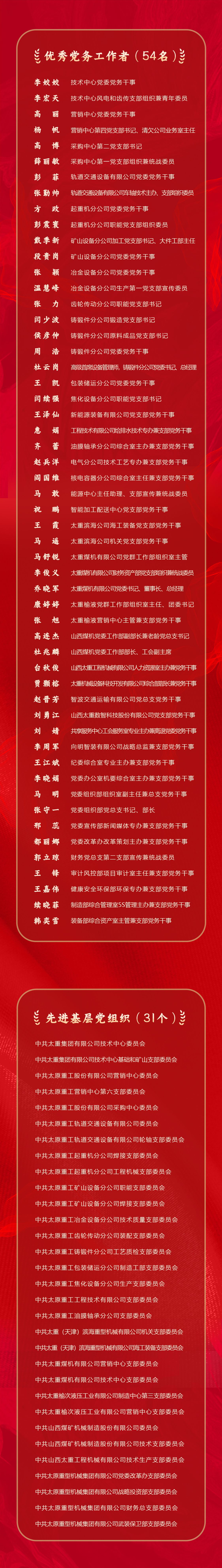 财务总支部委员会、中共太重集团有限公司技术中心委员会等31个党组织“先进基层党组织”称号。
