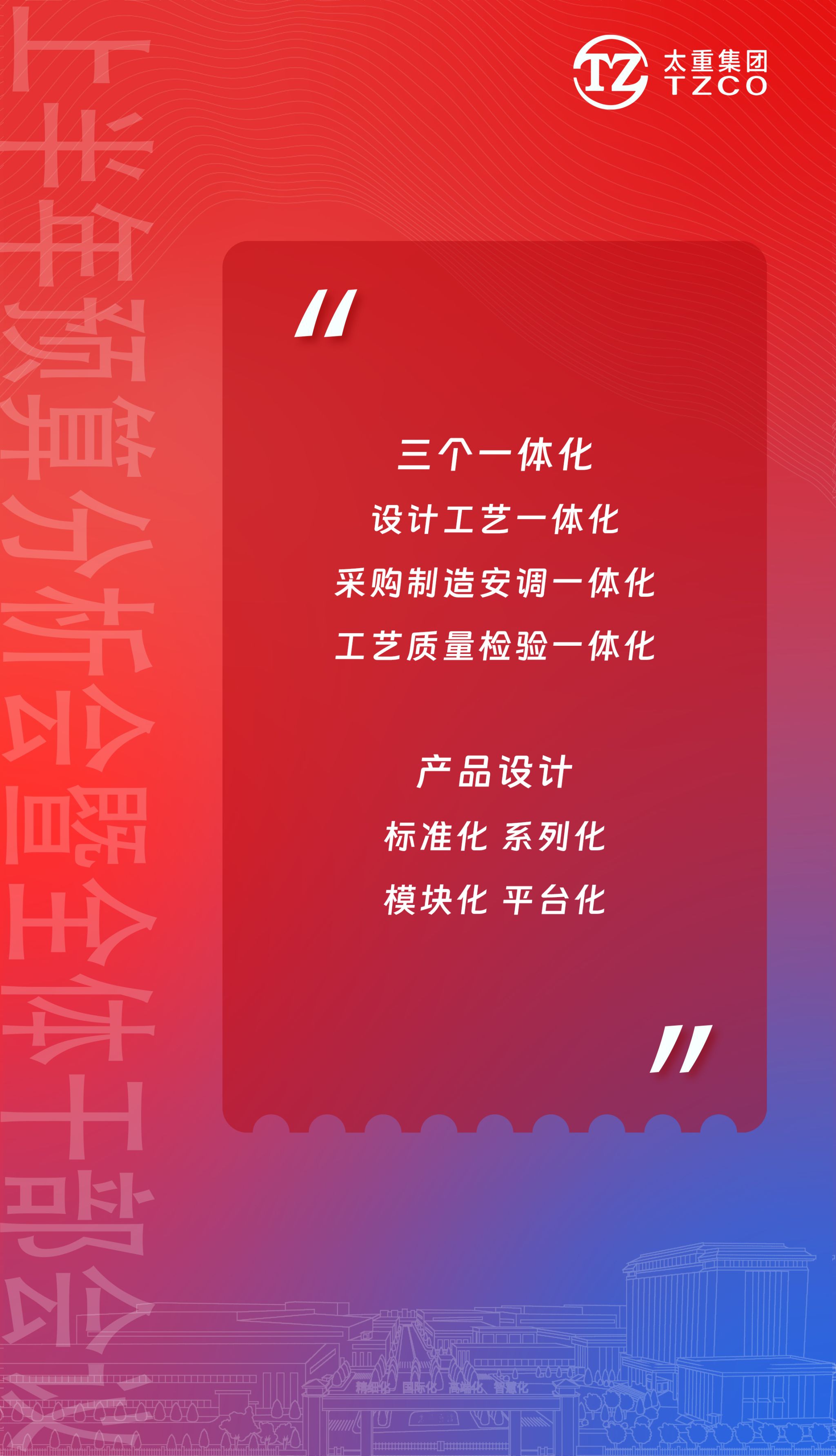 精益制造!制造精品!其理念就是为用户提供更多的产品价值,以“精益制造”理念贯穿公司高质量高速度发展之路,是所有太重人的必修课。