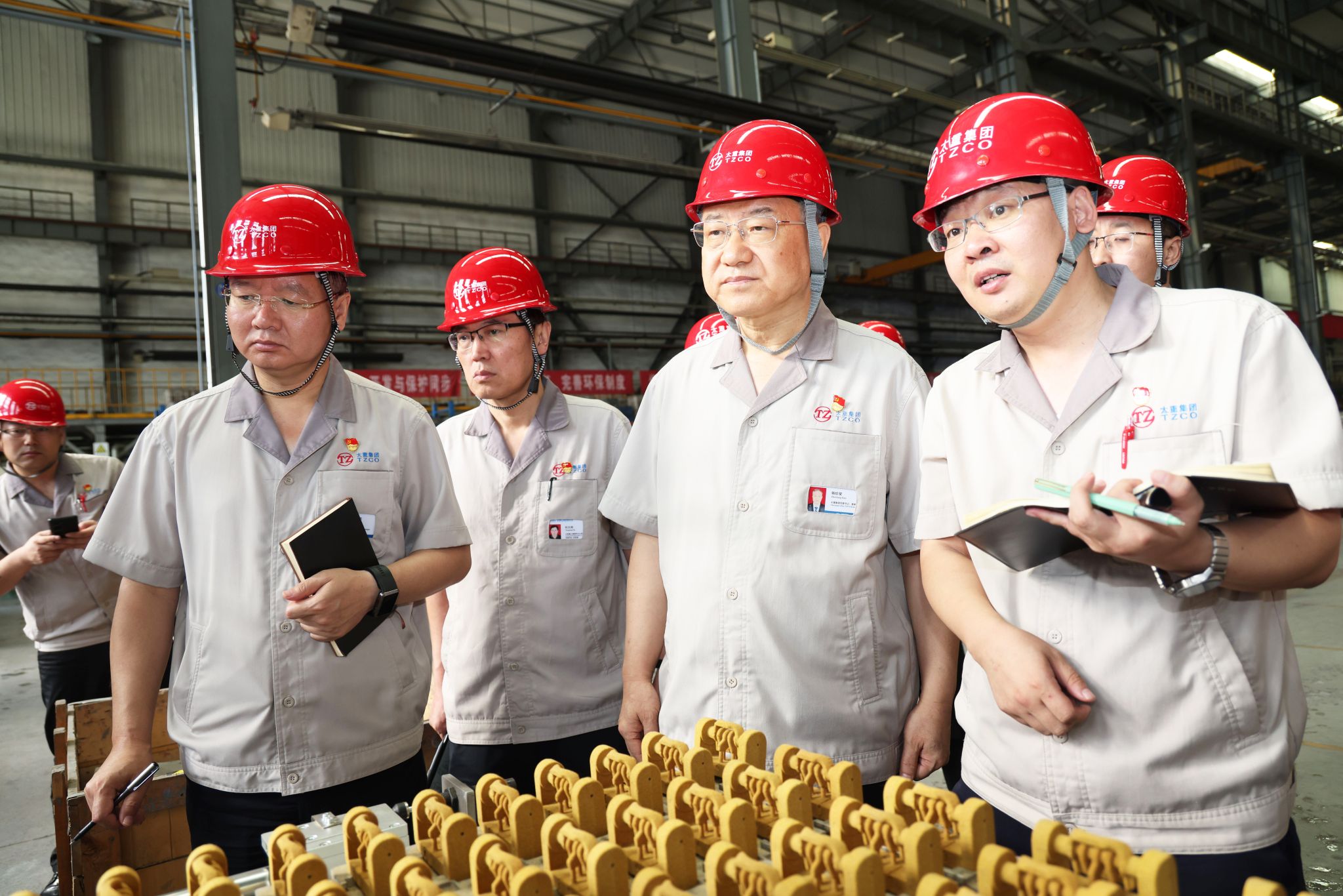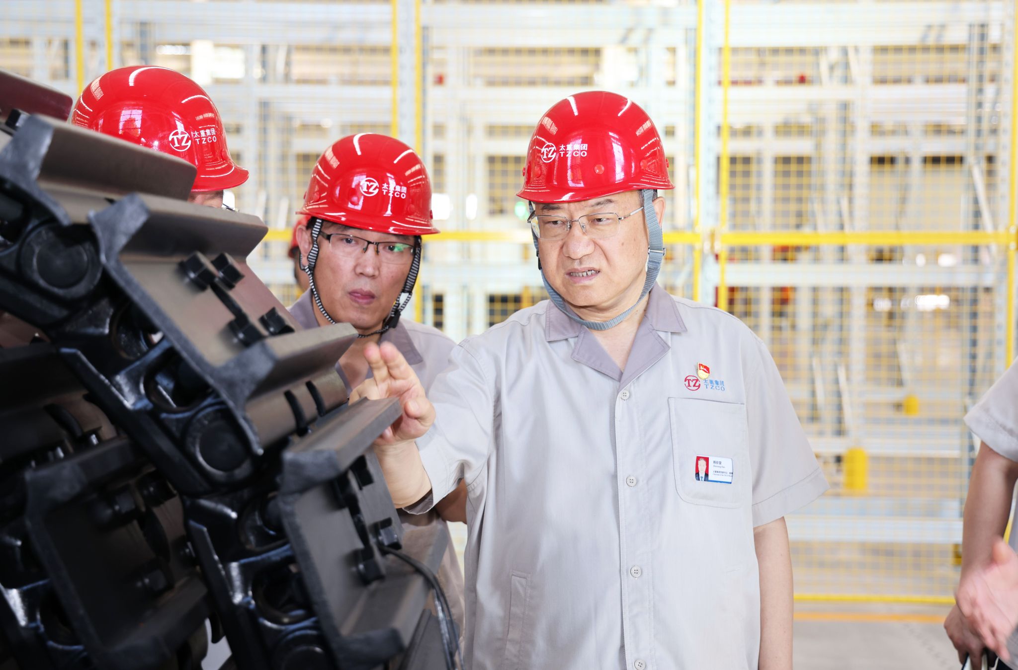 “四轮一带”项目立足于公司工程挖掘机的自主配套需求,是强化产业链配套能力的重要举措。步入车间,明亮整洁的环境令人耳目一新,自动上料、自动组装、自动压装,这条数字化产线正在释放强劲动能,智能制造加速“进化”。聚焦4-75立方米矿用挖掘机和0.8-200吨级全系列工程挖掘机的广泛应用场景,韩珍堂在自主生产的履带板和热处理产线前频频驻足,与技术人员探讨生产细节、分析技术难点堵点、针对性提出改进措施,他说,热处理工艺是机械制造行业中提升产品性能、可靠性和使用寿命的关键环节,要对各环节进行细致剖析、认真研讨,充分释放产能、保质保量完成生产任务,助力公司产品驶向全球,叫响太重品牌。