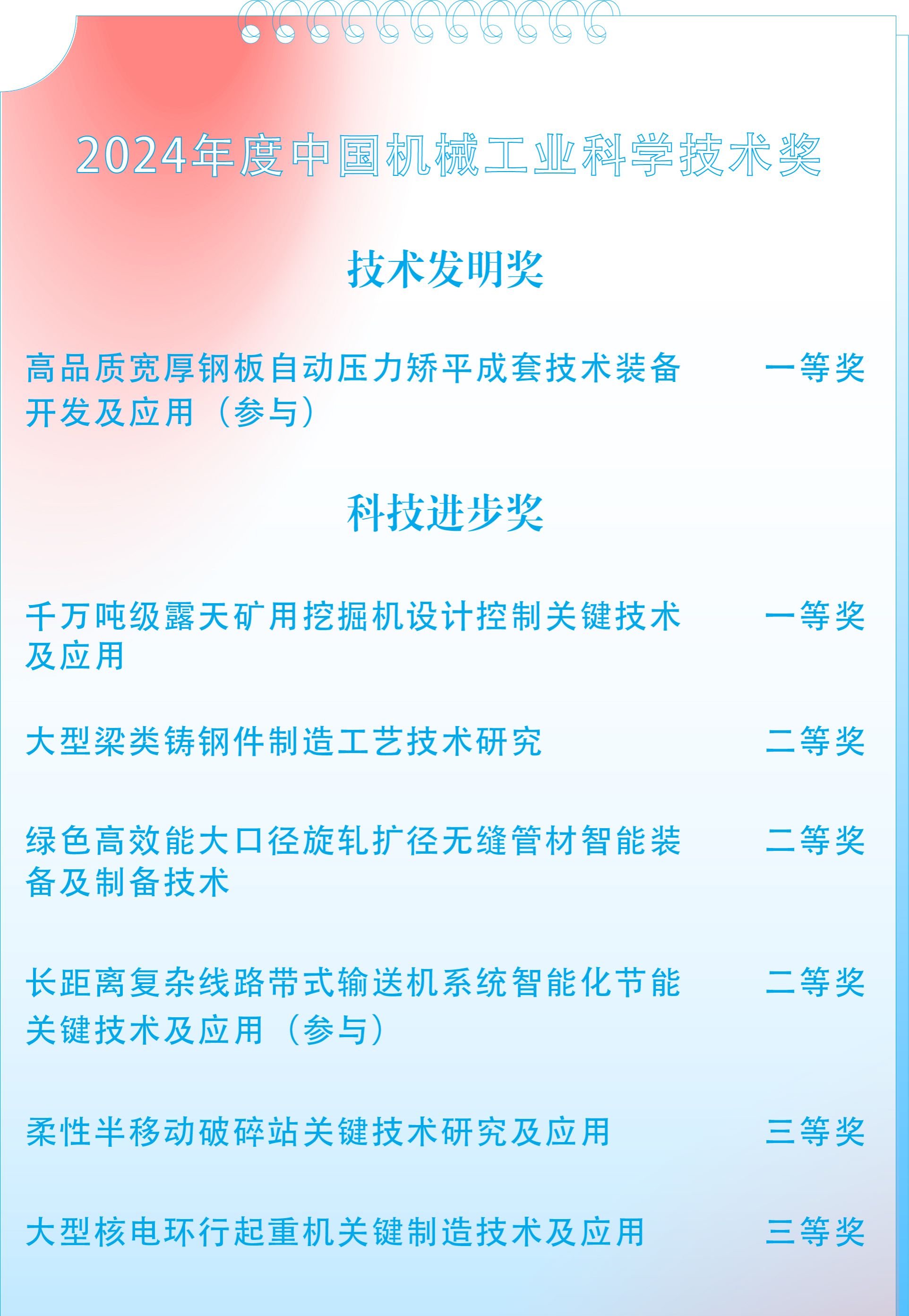 参与申报的“高品质宽厚钢板自动压力矫平成套技术装备开发及应用”同样收获了一等奖,该项目实现了理论模型、工艺装备、智能测控一体化的集成创新,开发研制了特宽特厚高强钢板压力矫平机系列装备,成果技术先进、创新性强,填补了国内空白,整体技术达到国际先进水平。其中,集成三维双投射平直度检测技术的自动压力矫平系统更是达到国际领先水平。此次获奖的七个项目覆盖矿山、时时彩、冶金、铸锻件等多个领域,累累硕果见证了太重科技工作者向下深耕、向上突破的不懈追求,折射出太重强大的科研实力和深厚的技术底蕴。科技创新是发展新质生产力的核心要素。太重集团将始终坚持把科技创新作为第一动力,依托“一重点、一中心、多基地”的技术研发体系,营造“人人参与创新,事事成于创新”的浓厚氛围,以高水平科技创新引领建设具有国际一流竞争力的现代智能装备制造企业。