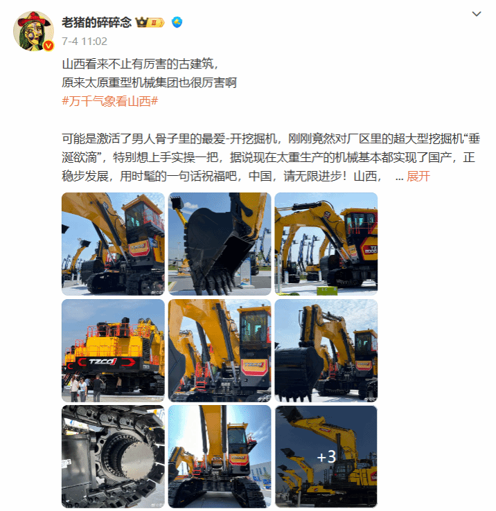 @使徒子:“太科幻了!强烈要求客串《流浪地球》。”@江氏小盗龙:“吹着空调去挖矿,智能化太强了吧!”@何春银微想:激情赋诗《太重太牛》七言律诗,赞叹现代工业的蓬勃气象。国家级媒体的强势站台,让这场盛况更加出圈。新华网客户端以《网络名人走进太重集团,看工业大块头的“智”变》为题进行深度报道,解码太重智变密码。