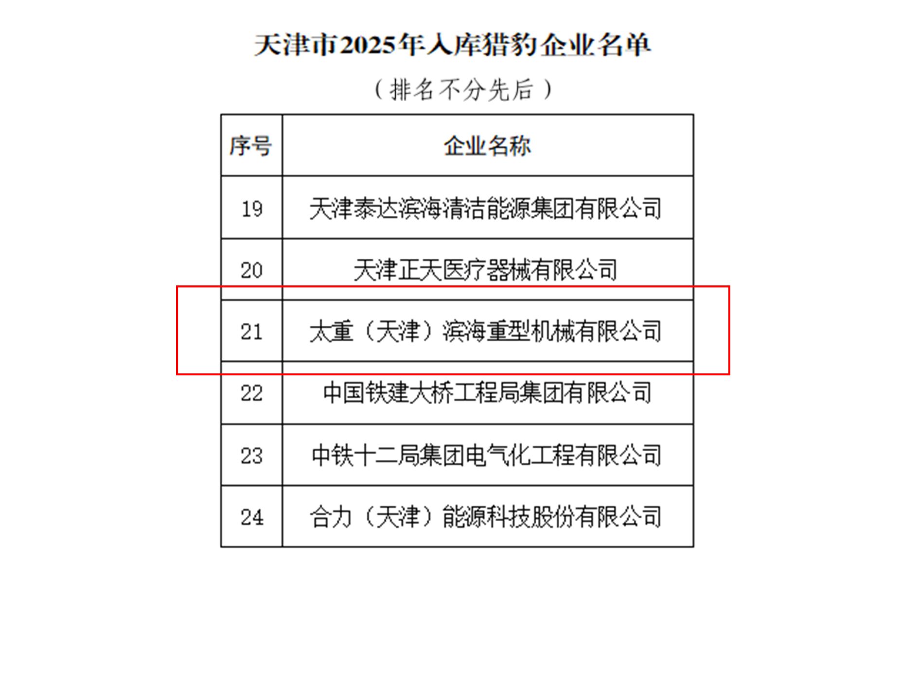 近日,天津市首批猎豹企业评选结果正式揭晓,太重滨海公司凭借卓越的创新实力和高速成长性成功上榜,成为天津市重点培育的高成长性标杆企业之一。