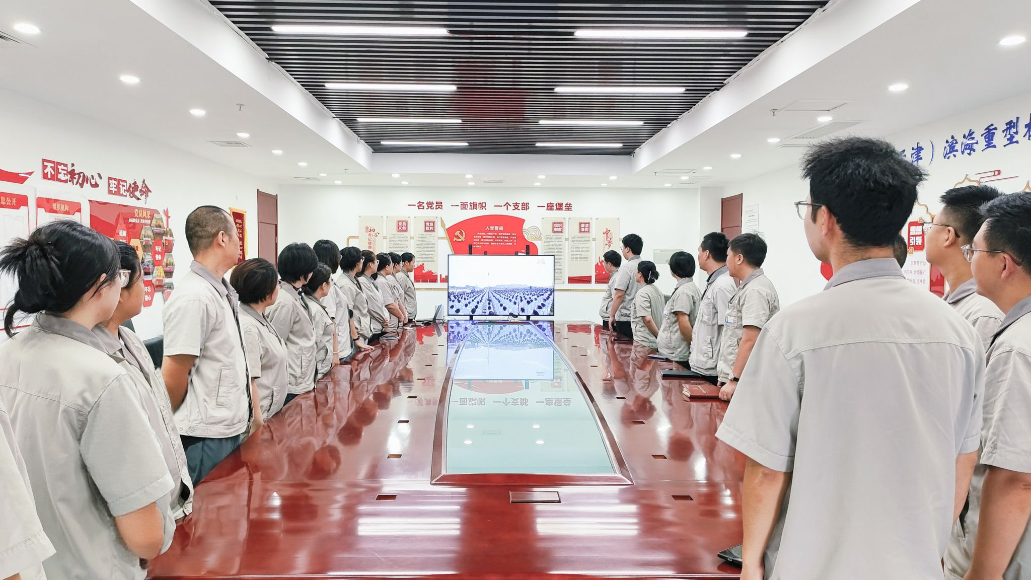 在集团总部报告厅,集团公司领导与各部门职工代表齐聚,集中收听收看大会实况直播,共同聆听感悟习近平总书记发表的重要讲话,深刻体会讲话中蕴含的历史意义与时代价值,见证这一庄严而光辉的历史时刻,爱国情怀在太重激荡,奋斗热情在每一位职工心中点燃。