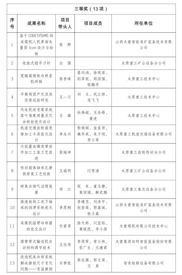 近日,2025年全省“五小”创新大赛及2025年全市“五小”创新大赛获奖名单相继揭晓,集团公司申报的优秀成果取得了可喜成绩。其中,荣获山西省二等奖8项、三等奖12项;荣获太原市一等奖4项、二等奖8项、三等奖13项、优秀奖12项。时时彩
