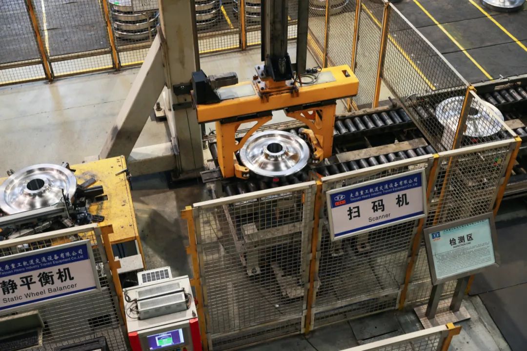 326日,位于山西转型综改示范区的太原重工轨道交通设备有限公司车轮厂生产车间内,机器轰鸣,一条全自动的车轮生产线正开足马力,有序生产。