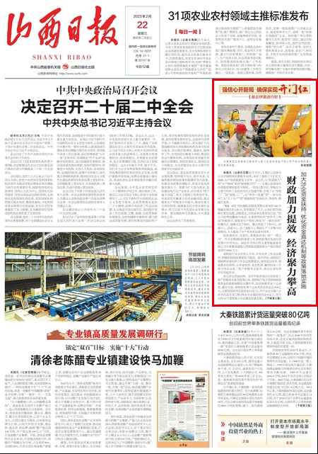 今天,山西日报《强信心开新局 确保实现开门红》专栏,在头版显著位置,聚焦在经济政策支持下,太重集团新园区建成全流程的智能化生产线,代表了行业最先进的工艺技术装备水平,实现了产能规模、产业布局和产品结构的跨越升级,在智能制造、创新驱动等方面成绩显著,为全省经济开好局起好步作出贡献。下面对相关内容进行转载。