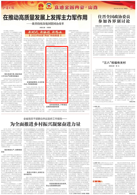今日,山西日报【新时代 新征程 新伟业——2023年全国两会特别报道】专栏,刊发了《在推动高质量发展上发挥主力军作用 ——我省持续深化国资国企改革》文章,深入报道了太重集团在推动我省高质量发展中的突出成效 。近年来,太重集团苦练内功、提质增效,扎实推进国企改革,在智能制造、创新驱动、人才体制机制改革等方面亮点频出、成效显著,成为推动全省高质量发展的重要力量。