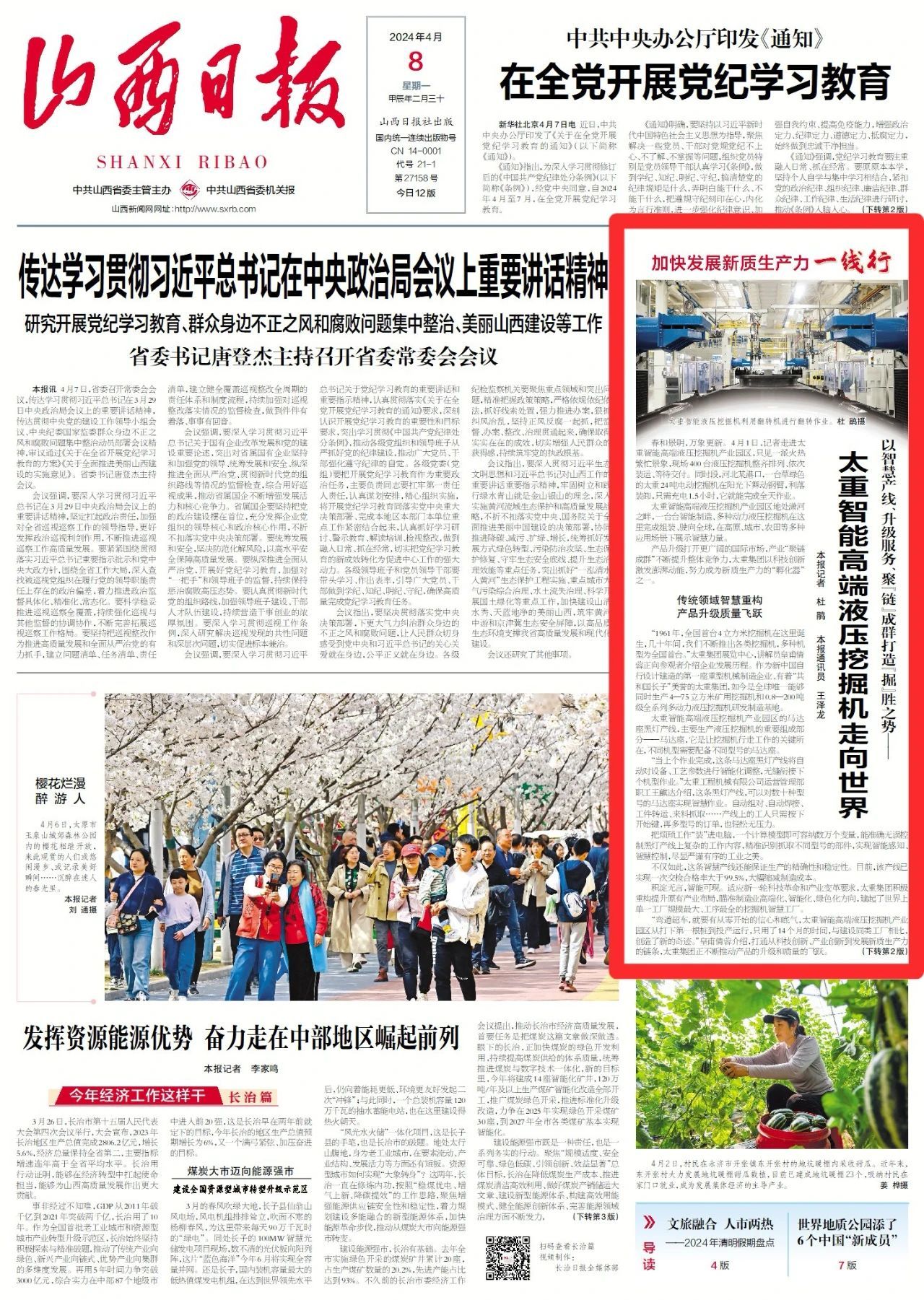 省工信厅日前发布的《山西省高端装备制造产业链2024年行动计划》中,工程机械领域被明确为主要发展方向之一。太重集团作为“链主”企业和山西省高端装备制造(工程机械)产业联盟理事长单位,承担着突破高端装备制造核心技术瓶颈、提升全产业链科技创新能力、强化高端装备制造供应链稳定性和配套能力的重任。