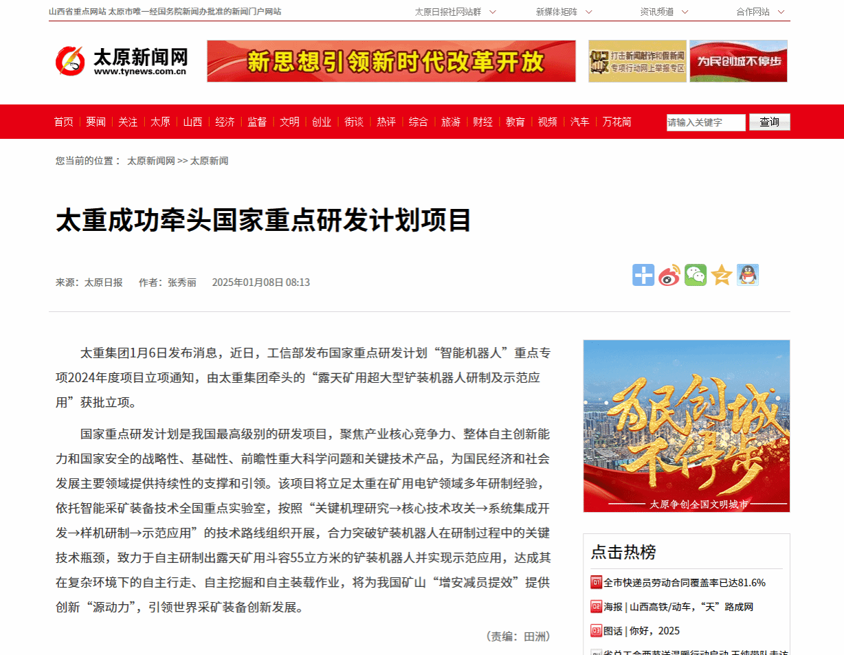 与此同时,山西日报、太原日报、中国工程机械工业协会等主流媒体与行业平台也迅速关注,纷纷转发了太重这一重要突破,刷屏“朋友圈”!