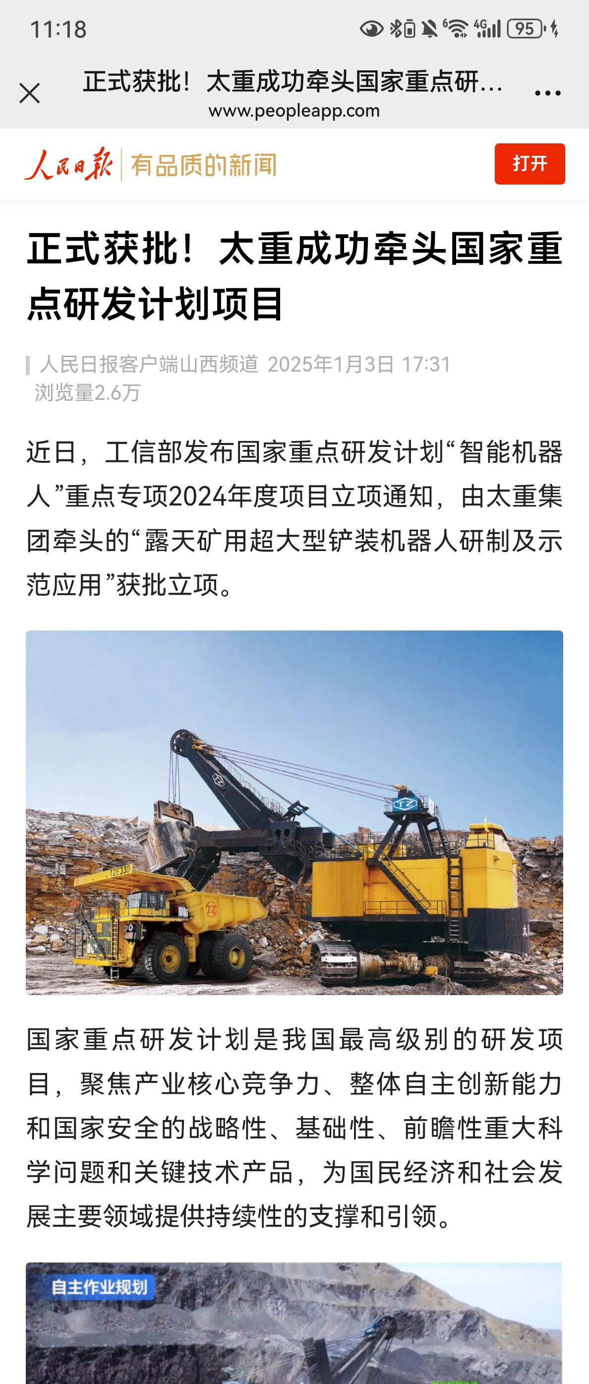 太重集团官微发布这一消息后,立刻受到人民日报的重磅关注,彰显出国家对太重科技创新能力的高度认可。