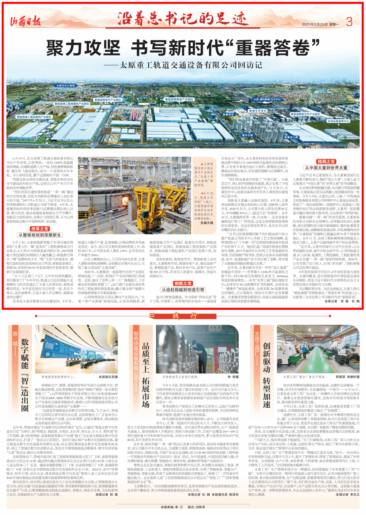 在习近平总书记考察调研太重八周年之际,山西新闻联播、山西日报【沿着总书记的足迹】专栏聚焦太重,感知公司“智”造高地的澎湃动能,展现太重的改革之变、创新之变、格局之变,见证太重人加速竞跑的具体实践!