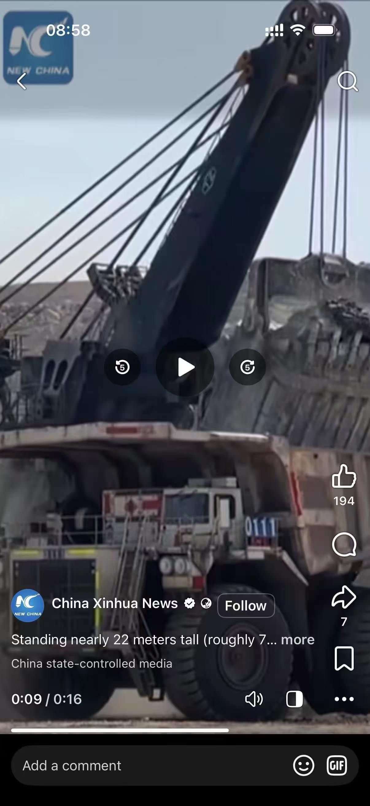 近日,新华社海外客户端聚焦太重矿用电铲。视频中,“钢铁巨无霸”巍然屹立,尽显国之重器的磅礴气场;一铲百吨,顷刻装满一辆矿用卡车,向世界展示“太重智造”的硬核实力。视频还通过其Facebook、Twitter、YouTube多平台同步发布。