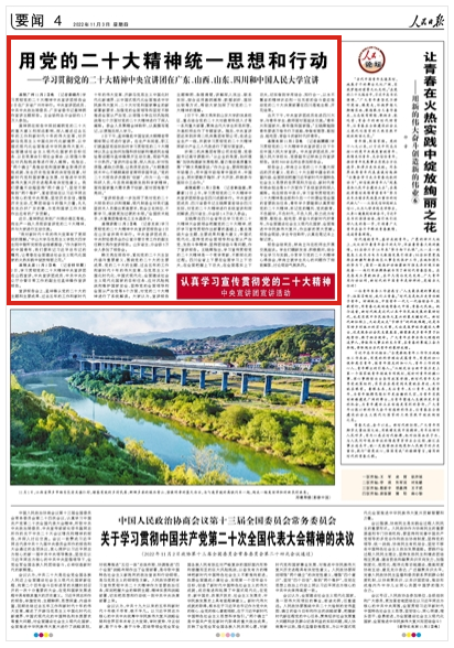 人民日报刊发的《用党的二十大精神统一思想和行动——学习贯彻党的二十大精神中央宣讲团在广东、山西、山东、四川和中国人民大学宣讲》文章,对公司职工王永晶进行了采访报道。