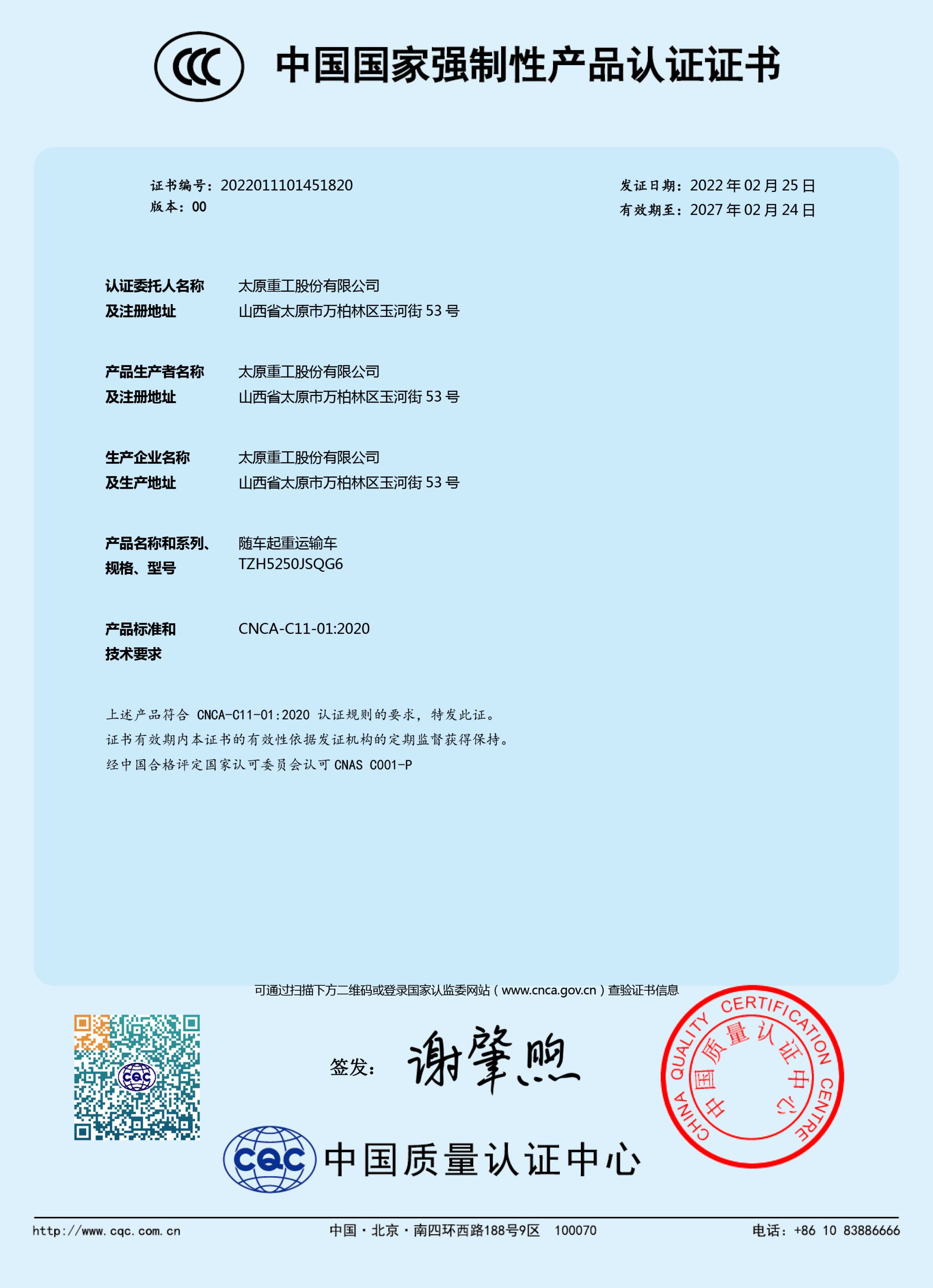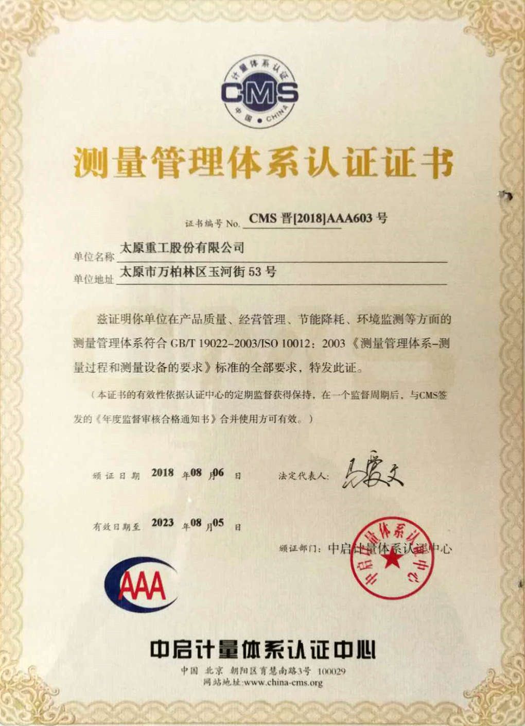在执行ISO9001标准的基础上,太重积极推广应用可靠性管理、卓越绩效管理等先进管理方法、加强质量激励和质量改进力度,结合产品特点不断建立健全个性化的质量管理体系,通过实施“质量管理体系认证+可靠性管理体系认证”,打造质量管理体系升级版。太重荣获了多项质量管理荣誉:
